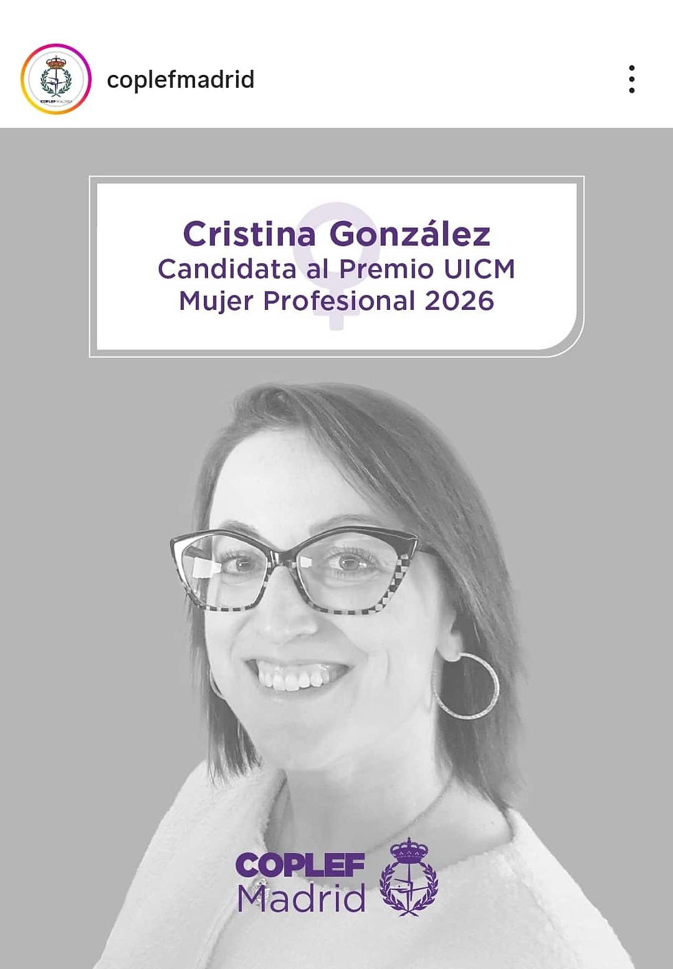 NOTICIA COPLEF: COPLEF Madrid presenta a Cristina González Jiménez (Col. 54093) como candidata al Premio UICM Mujer Profesional 2026. - Coplef